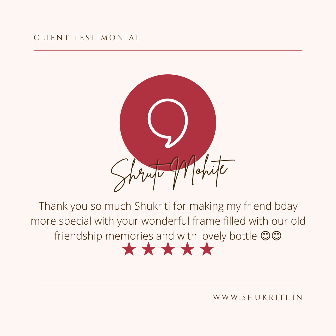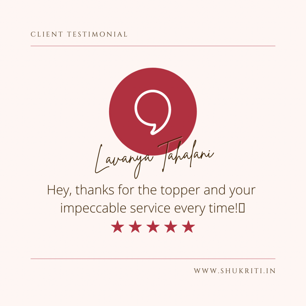 Shukriti was born out of the thought that stroked during an ice breaking session wherein a fellow participant shared her life experiences and how she came up with her own business idea. String of thoughts that followed, helped me in finding my passion and love for my art and hence came up the idea of “shukriti”.